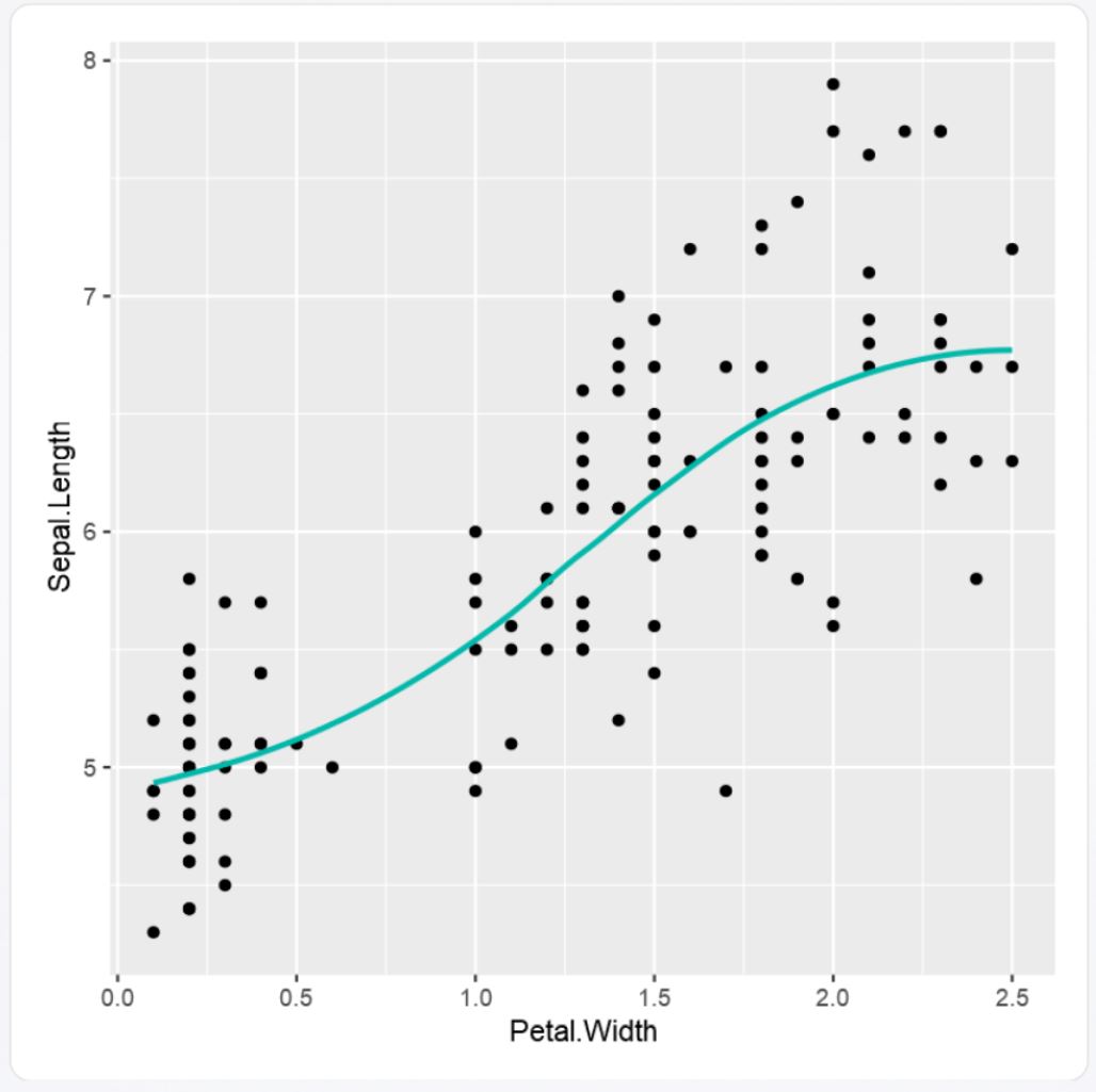 chart <- ggplot(iris, aes(x = Petal.Width, y = Sepal.Length)) +